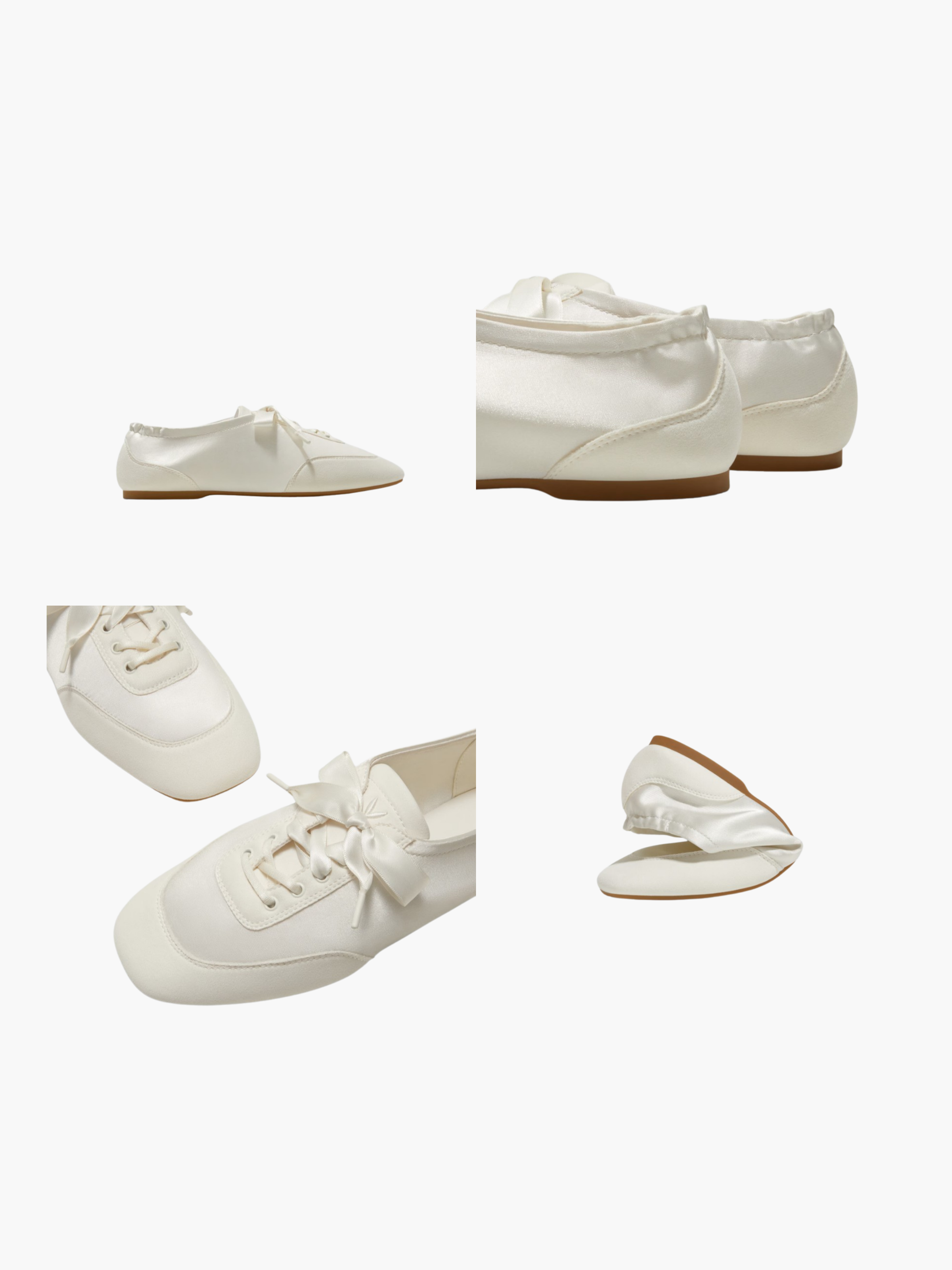 Its lightweight and foldable design ensures easy packing for travel, while the elastic back provides a snug, no-rub fit. The sneakers come with two sets of laces—flat and satin—allowing for customizable styling