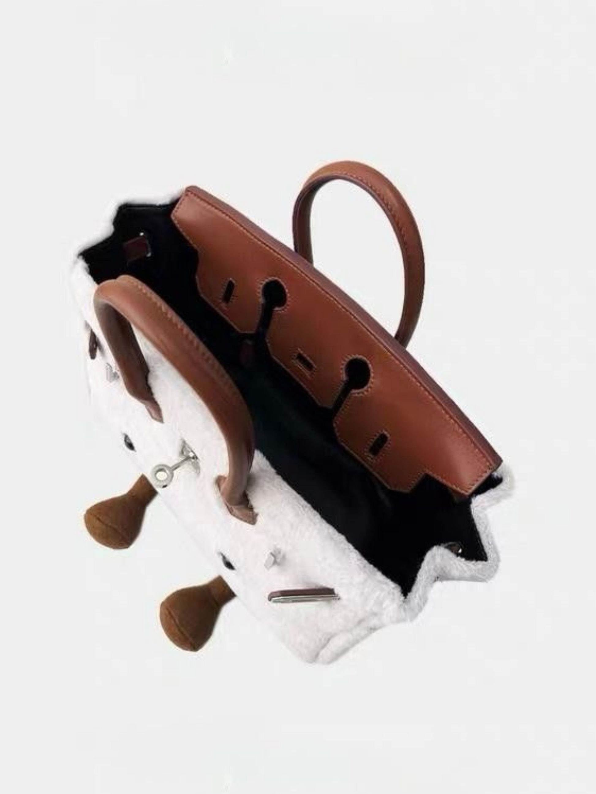 The Madame Pompom Bag — where plush sophistication meets timeless style. This whimsical yet refined handbag is the perfect fusion of fashion and fluff, designed for those who appreciate a little couture with their cuddle.