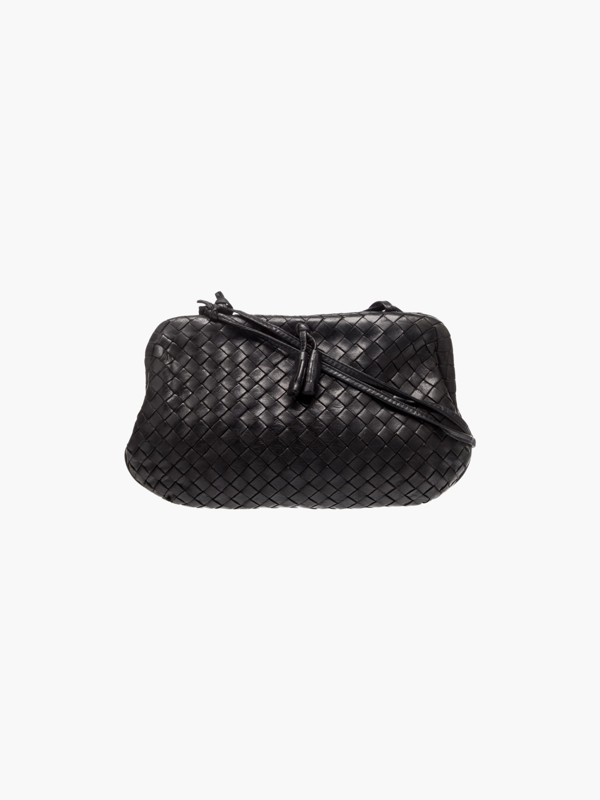 An ode to Italian heritage and artisanal finesse, The Vintage Vento Shoulder Bag channels the quiet glamour of the late 1970s with a soft, timeworn soul. Rendered in supple black lambskin with Bottega Veneta’s iconic Intrecciato weave, it tells a story of storied craftsmanship and lived-in luxury. The gold-tone accents and relaxed silhouette embody understated elegance, while the tassel detail and kiss-lock closure add a romantic vintage charm.